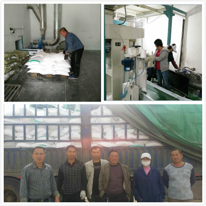 踏進米粉原料間上料工于文濤和王曉東正緊張的忙碌著。生產(chǎn)間操機手尚保福正聚精會神的查看機器運轉(zhuǎn)情況;瀱T孟玉瑩正利用跟班檢驗休息的空檔興致勃勃的換崗打包女工封包。成品間碼包工雖然是一位老師傅,一個人熟練而麻利的工作著。而成品倉內(nèi)孫義書記正帶領(lǐng)幾個員工承裝米粉,筆者利用大家休息的空檔還給他們留了一張合影。