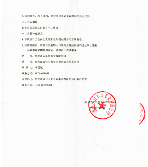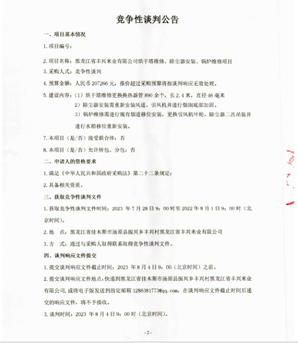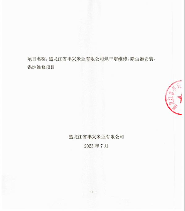 黑龍江省豐興米業(yè)有限公司烘干塔維修、除塵器安裝、鍋爐維修項目招標公告