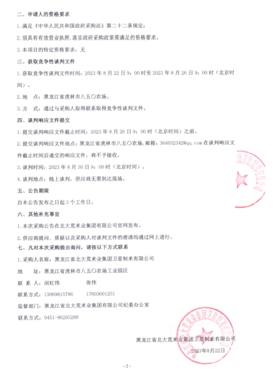 黑龍江省北大荒米業(yè)集團(tuán)衛(wèi)星制米有限公司烘干塔布袋除塵項(xiàng)目招標(biāo)公告