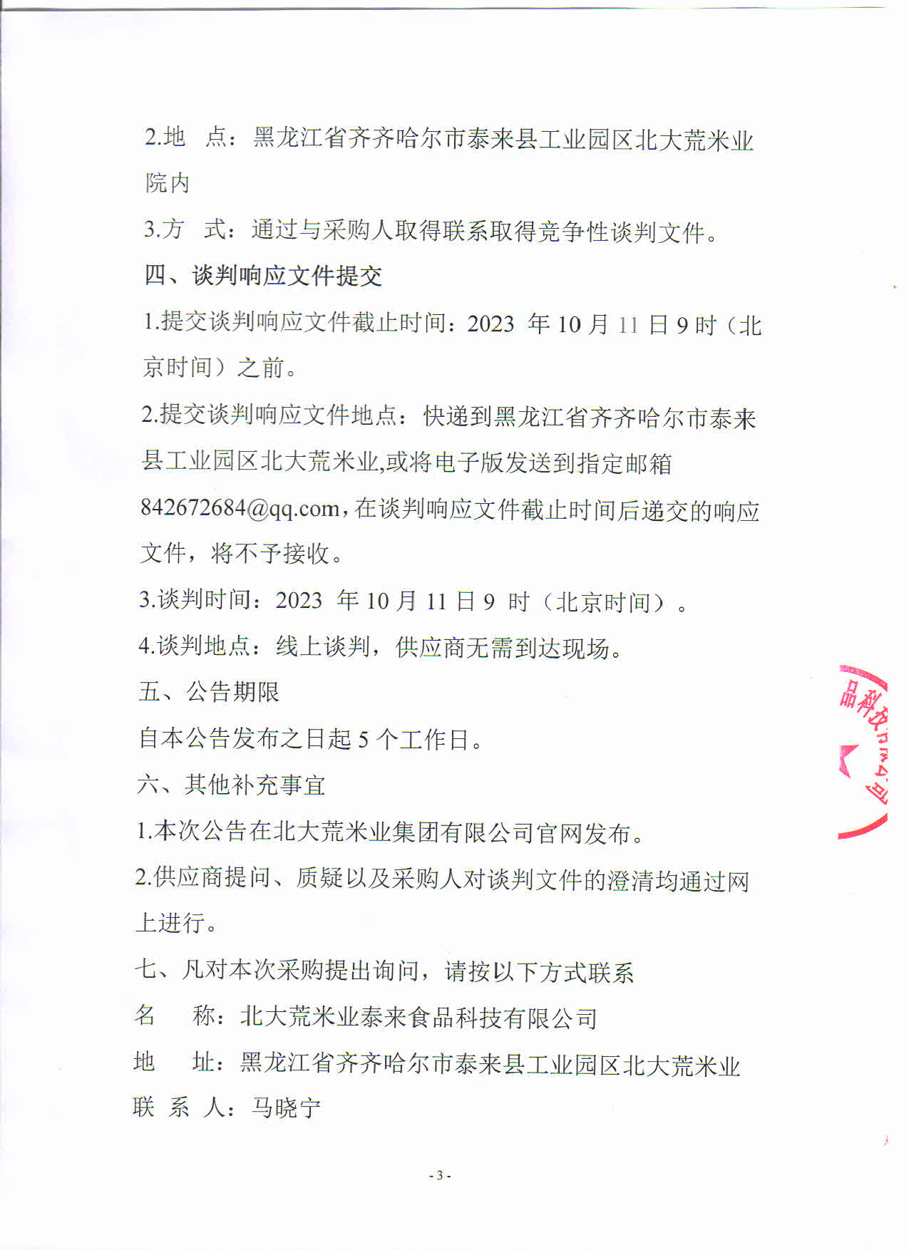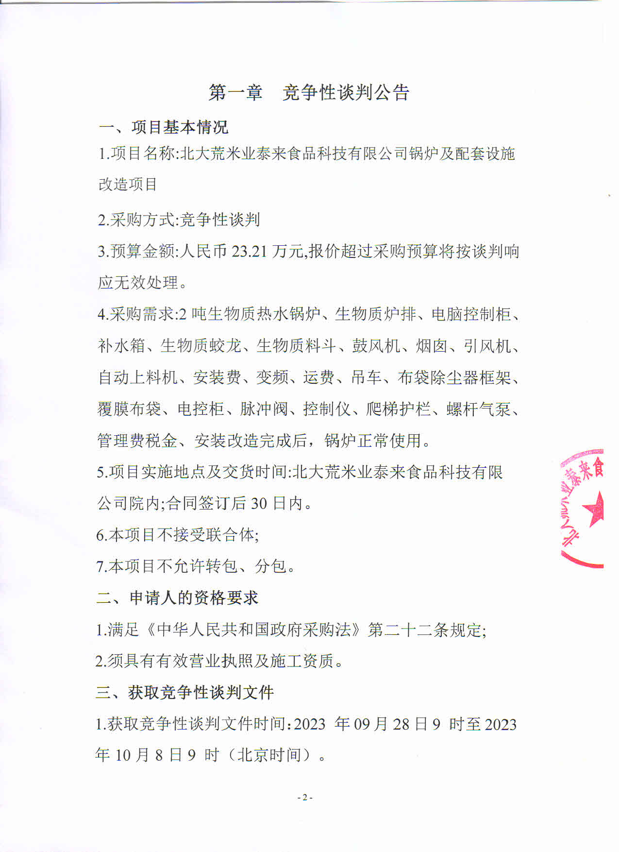 北大荒米業(yè)泰來食品科技有限公司鍋爐及配套設(shè)施改造項目競爭性談判公告