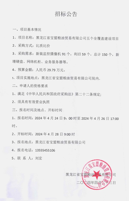 黑龍江省寶盟糧油公司五個(gè)全覆蓋建設(shè)項(xiàng)目招標(biāo)公告