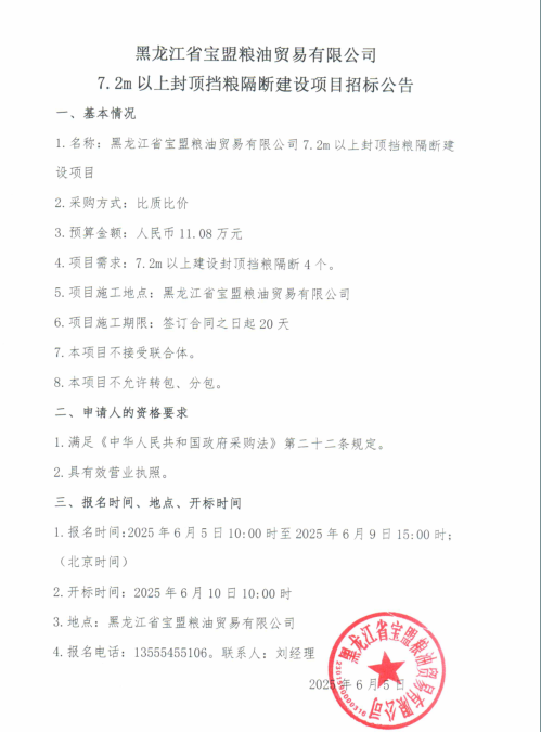 寶盟公司擋糧隔斷建設(shè)項(xiàng)目招標(biāo)公告