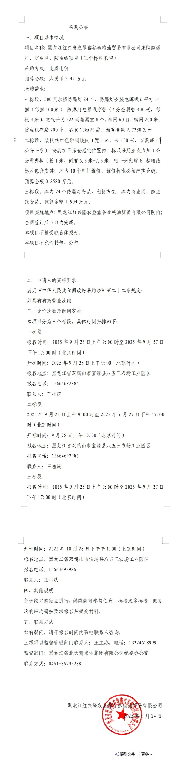 鑫谷泰糧油貿(mào)易有限公司采購防爆燈、防蟲網(wǎng)、防蟲線項目采購公告