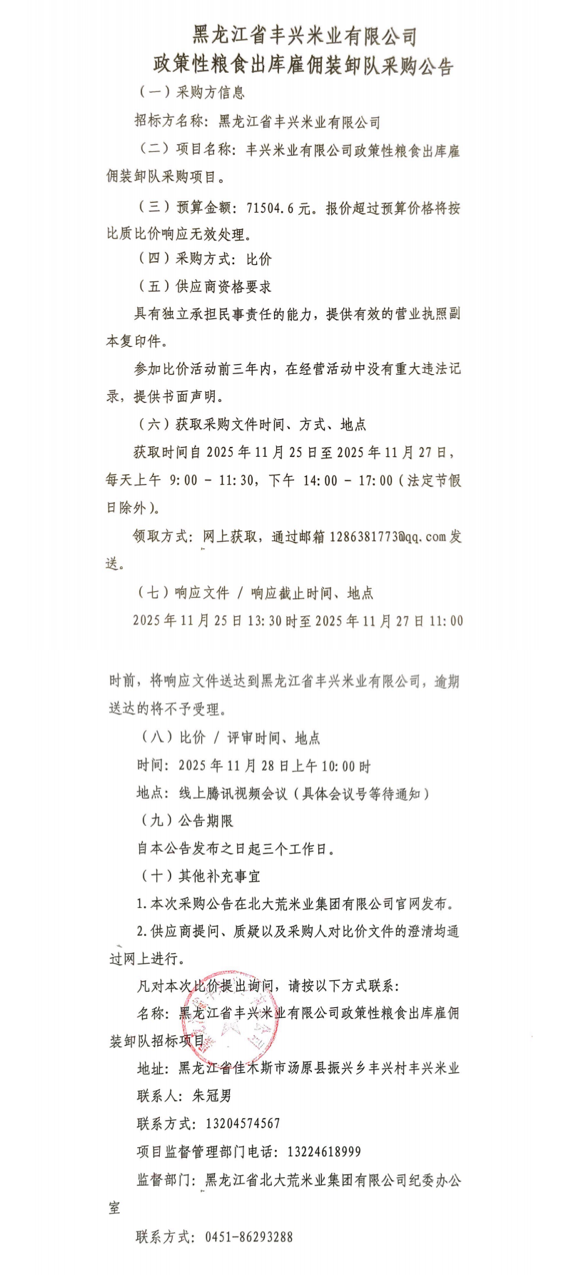 豐興米業(yè)政策性糧食出庫雇傭裝卸隊采購公告