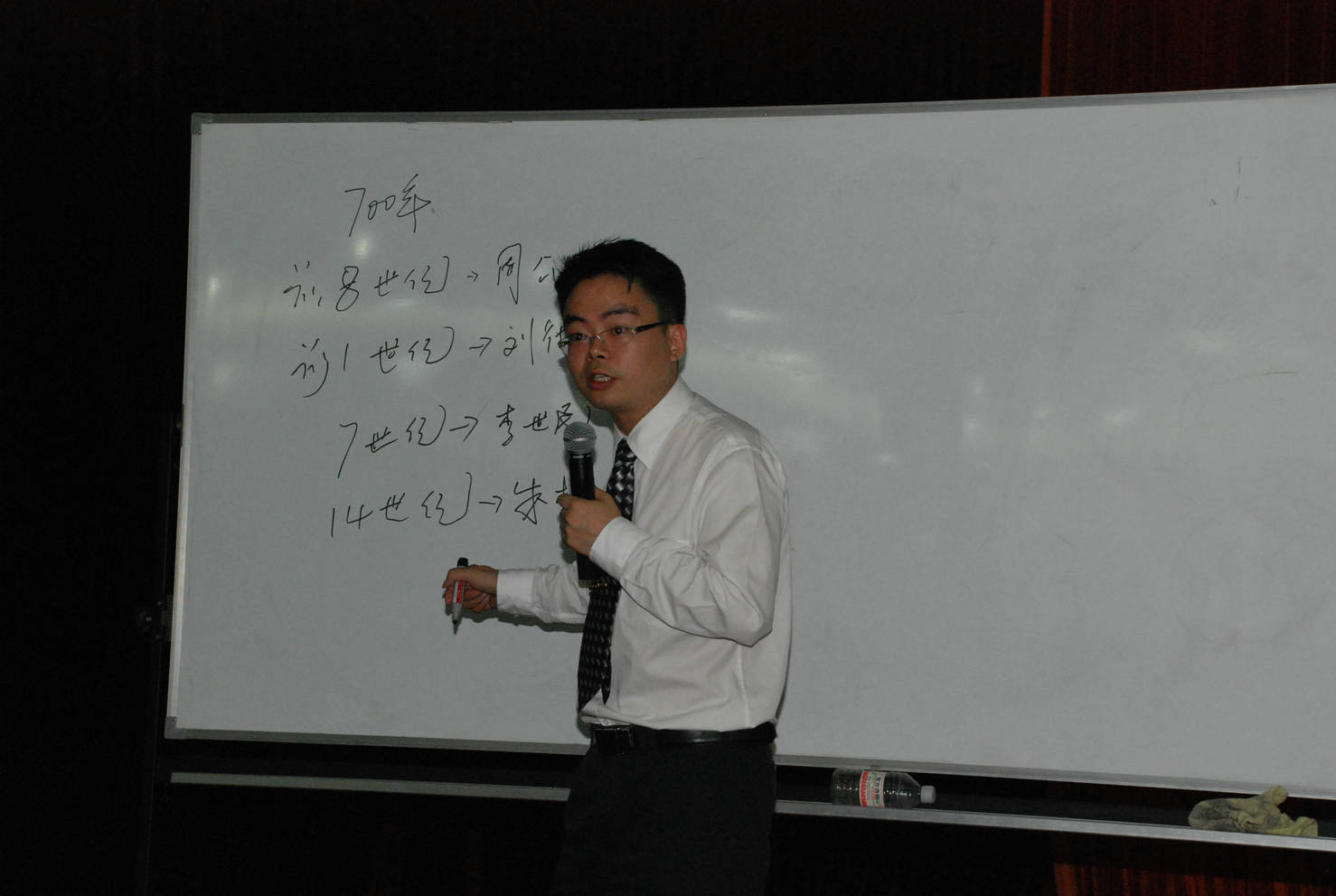 圖為鄭翔洲在為公司員工做培訓(xùn)
